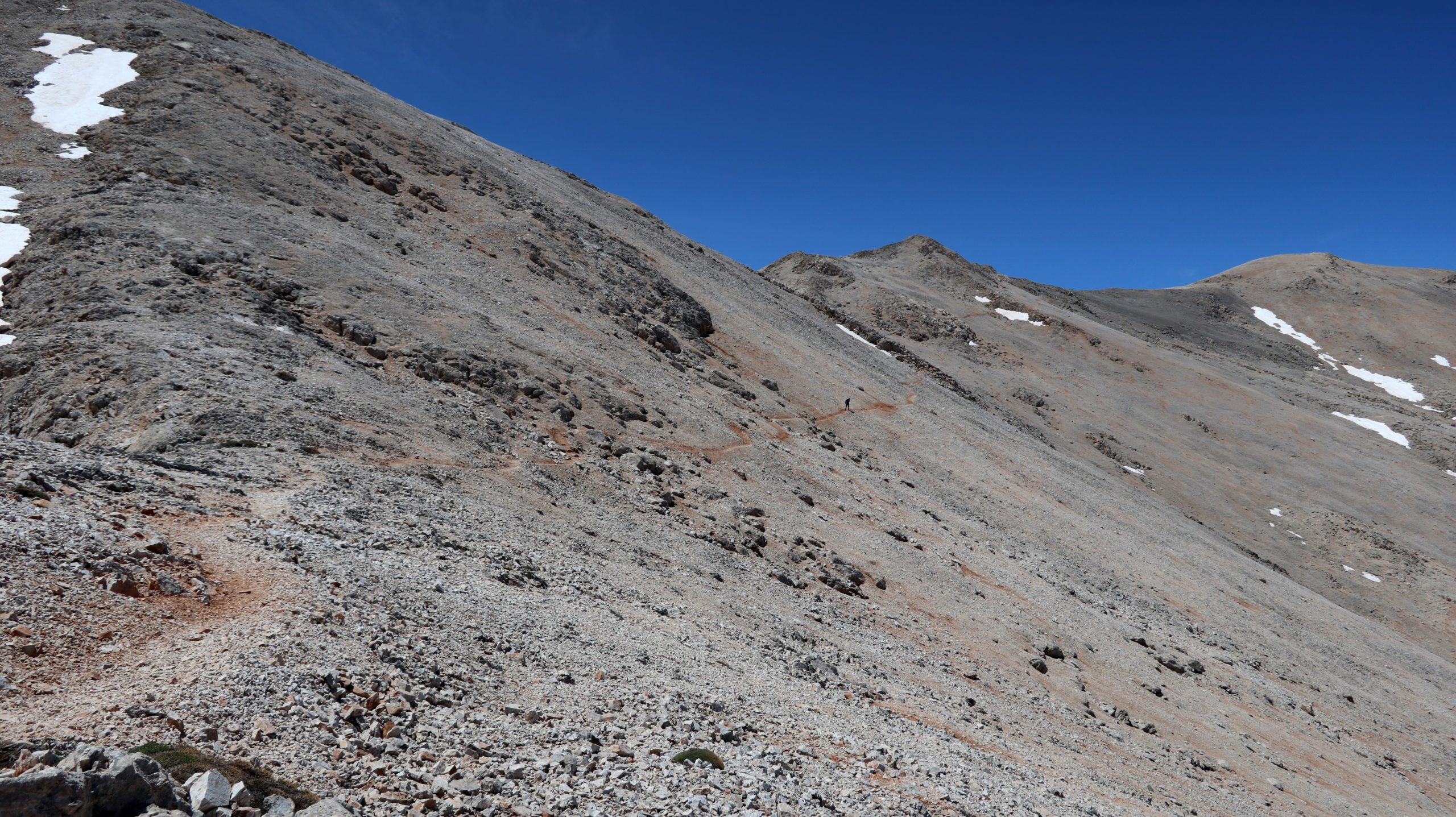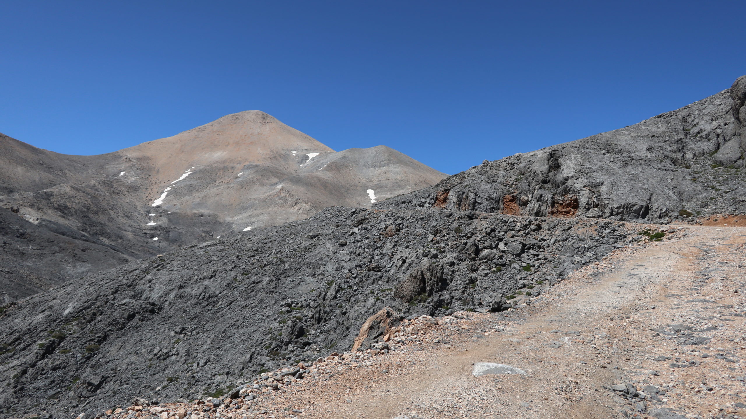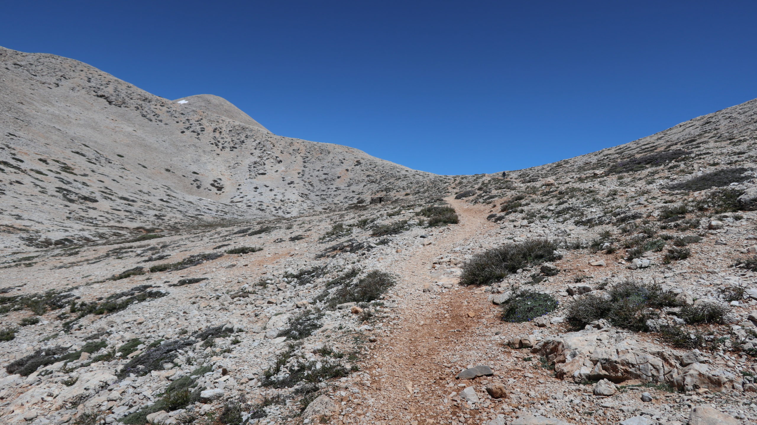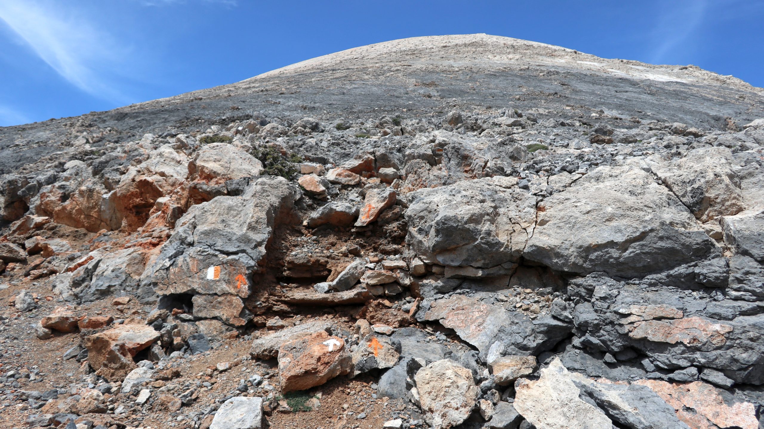 Den Ausgangspunkt der Tour erreicht man mit einem Geländewagen von Anopoli. Die ca. 1-stündige Anfahrt über die 18 km lange Schotterpiste ist ein Abenteuer für sich und nur erfahrenen Autofahrern zu empfehlen. Die Wanderung vom Ende der Schotterpiste zum Pachnes ist kurz und einfach: Man kraxelt bei den roten Pfeilen neben der Strasse eine Felsstufe hinauf und gelangt über einen Pfad zu schwarzen Felsplatten, die überquert werden. Damit ist auch schon der schwierigste Teil der Tour geschafft. Danach führt ein sehr gut markierter und ausgetretener Pfad über gut gesetztes Geröll zum Rousies-Pass. Von dort geht es über einen breiten Rücken unter den Gipfel Gavala. Der Weg quert in Folge unterhalb des Kamms, der Gavala und Pachnes verbindet, entlang. Achtung, hier können sich bis in den Mai hinein Schneefelder halten (Nordexposition). Schliessich erreicht man den wenig markanten Ostgrat des Pachnes und steigt zum Gipfel auf. Vom Gipfel eröffnet sich ein umfassender Blick auf die weisse Mondlandschaft bis zur Küste des Lybischen Meeres. Die Rückkehr erfolgt auf dem Hinweg.