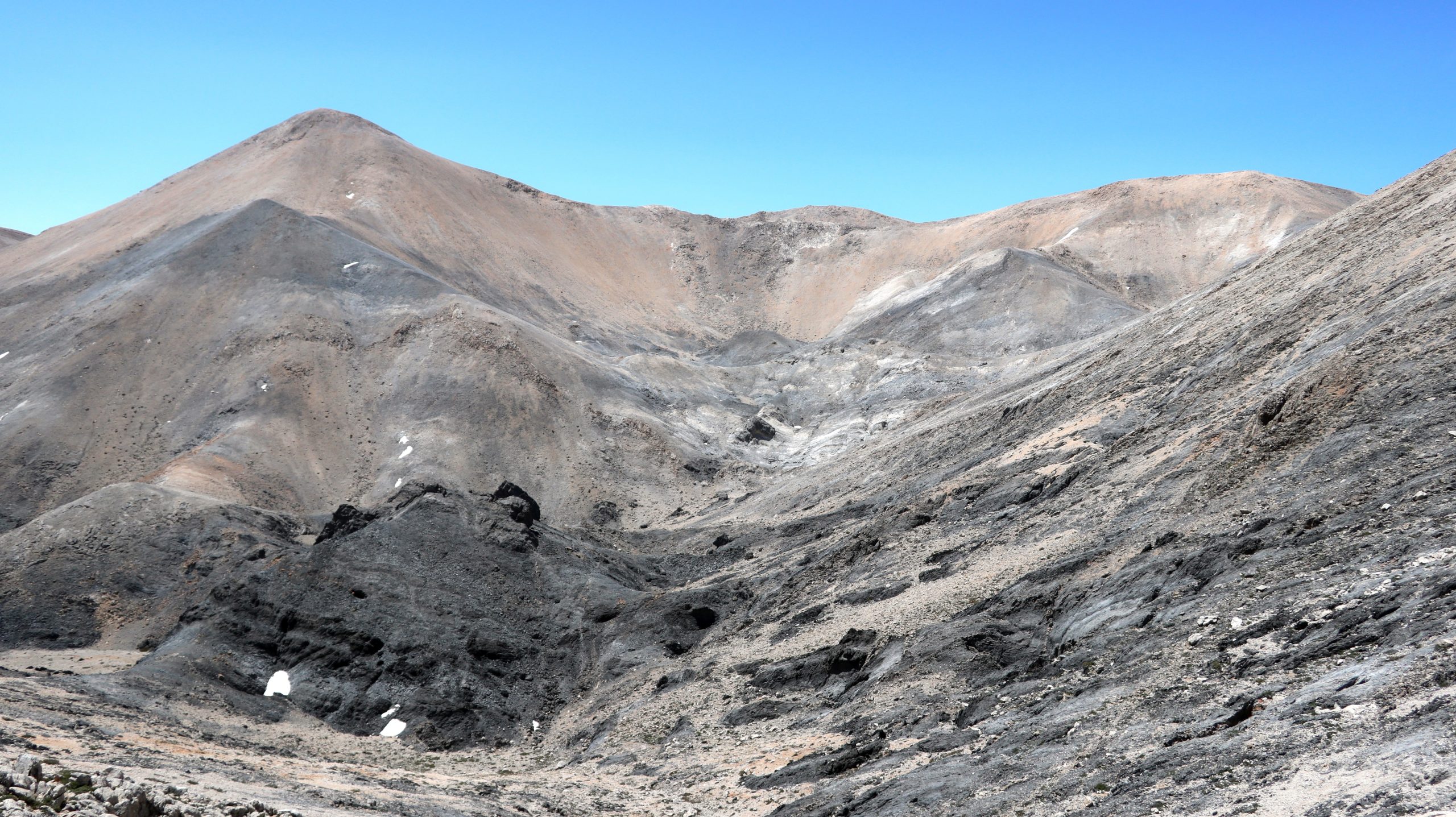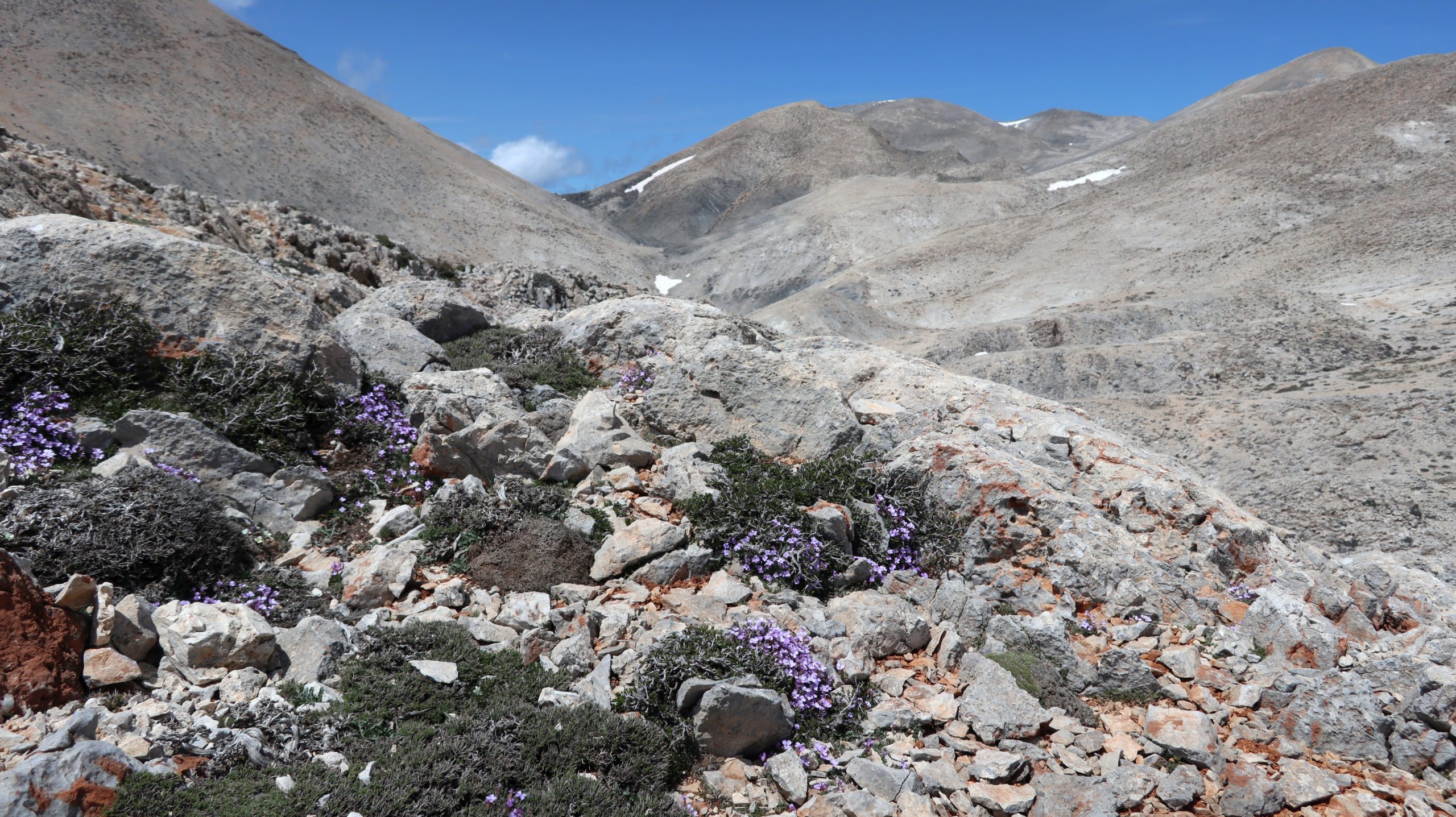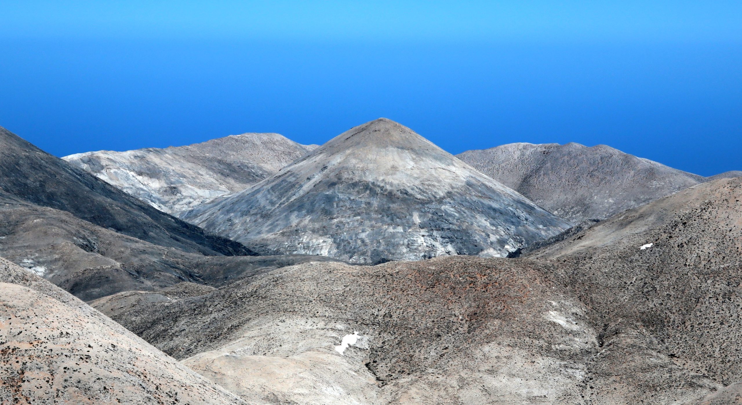 Der Pachnes ist der zweithöchste Gipfel Kretas und gehört zum Gebirgsmassiv der Lefka Ori, den Weissen Bergen. Mit einer Höhe von 2453 Metern ist er gerade mal drei Meter niedriger als der Psiloritis. Die Weissen Berge erhielten ihren Namen, da sie sowohl im Winter als auch im Sommer eine helle Farbe aufweisen: Im Winter durch Schnee, im Sommer durch das helle Kalkgestein. Die kegelförmigen, aus feinem Geröll bestehenden Gipfel erinnern abgesehen von der Farbe allerdings mehr an die Vulkanlandschaft der Kanaren als an eine Mittelmeerinsel. Die konischen Formen rühren aber nicht vom Vulkanismus her, sondern entstanden durch die extreme Verwitterung. Der zentrale Teil des Gebirges zählt zu den wenigen europäischen Wüstengebieten. Daher ist das Gebiet wenig erschlossen und nur mit langen Fussmärschen kann in die Mitte der Weissen Berge vorgedrungen werden. Ausnahme ist die Schotterpiste von Anopoli zum Pachnes, über die mit einem geländetauglichen Fahrzeug bis auf 2000 m Höhe gefahren werden kann.