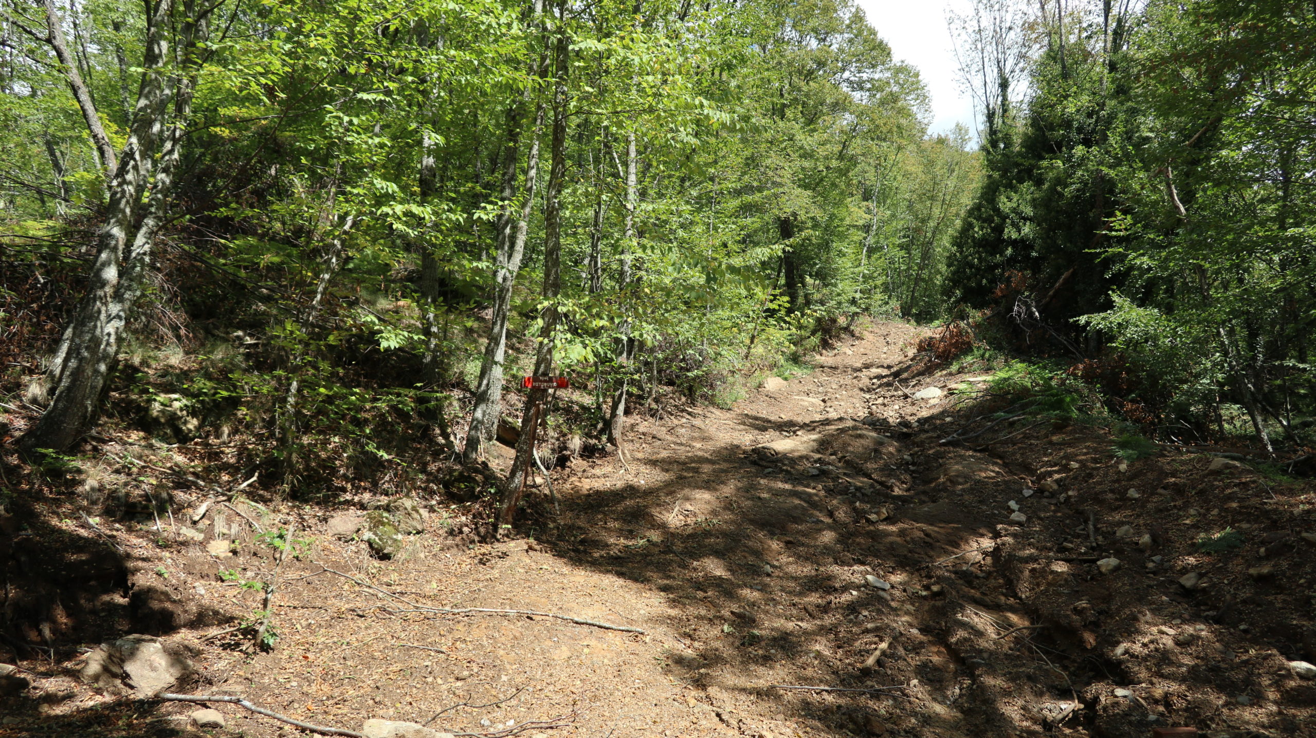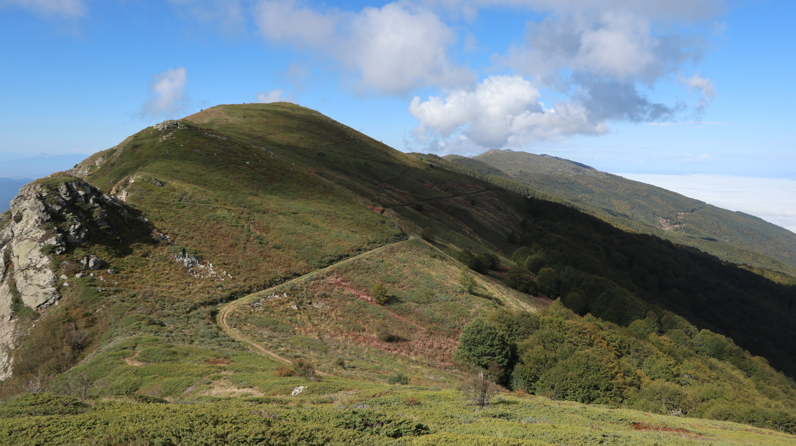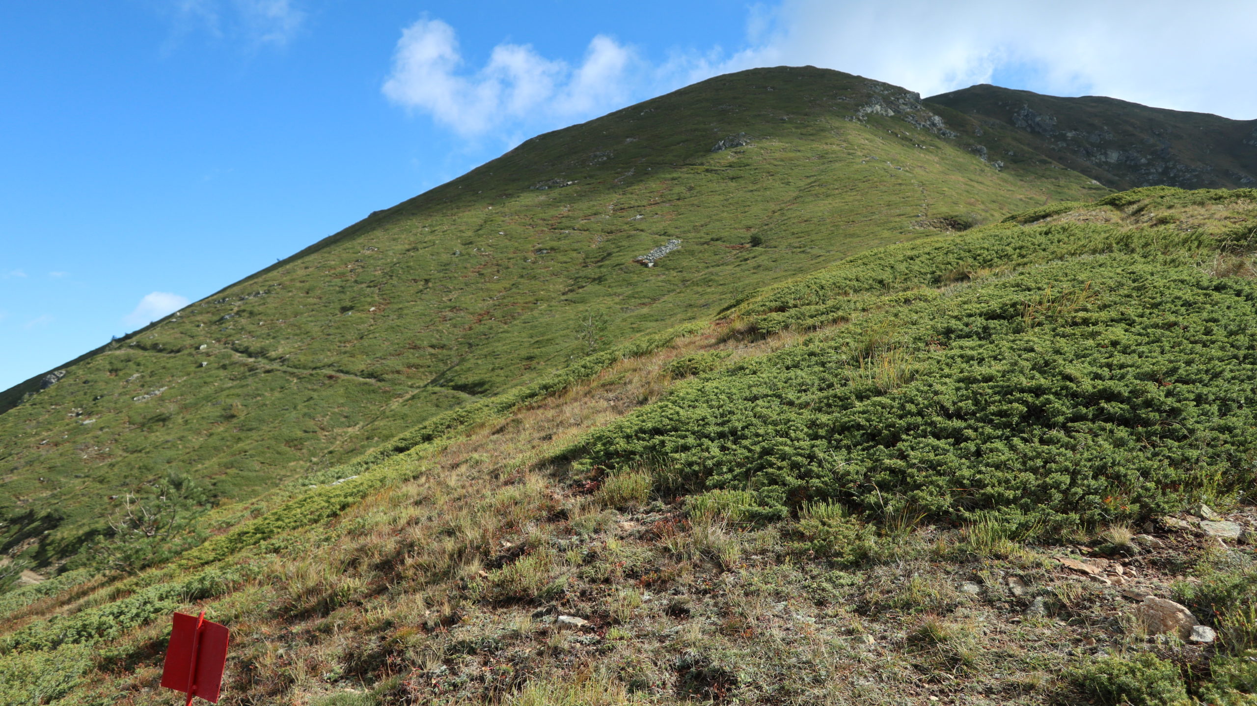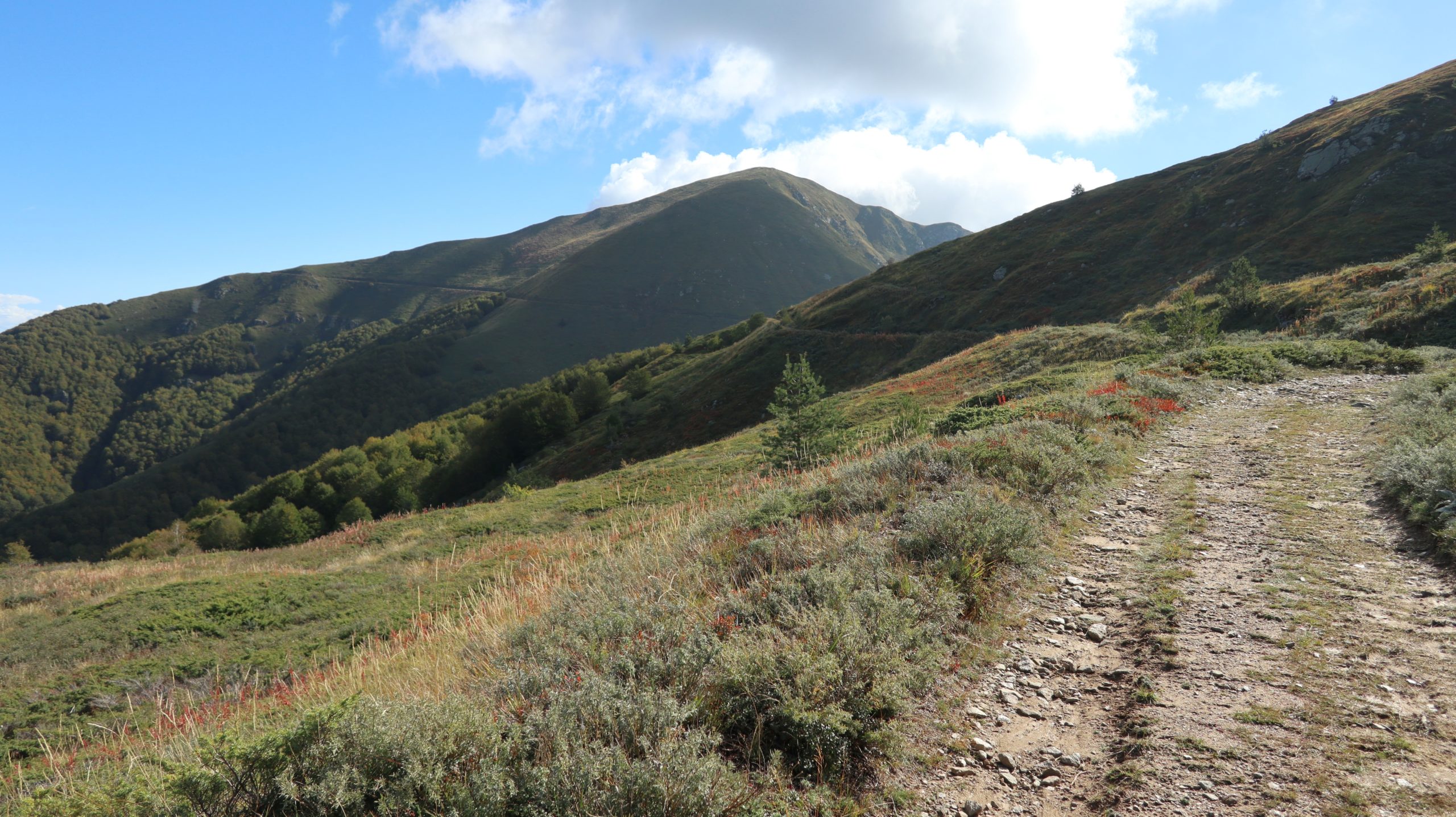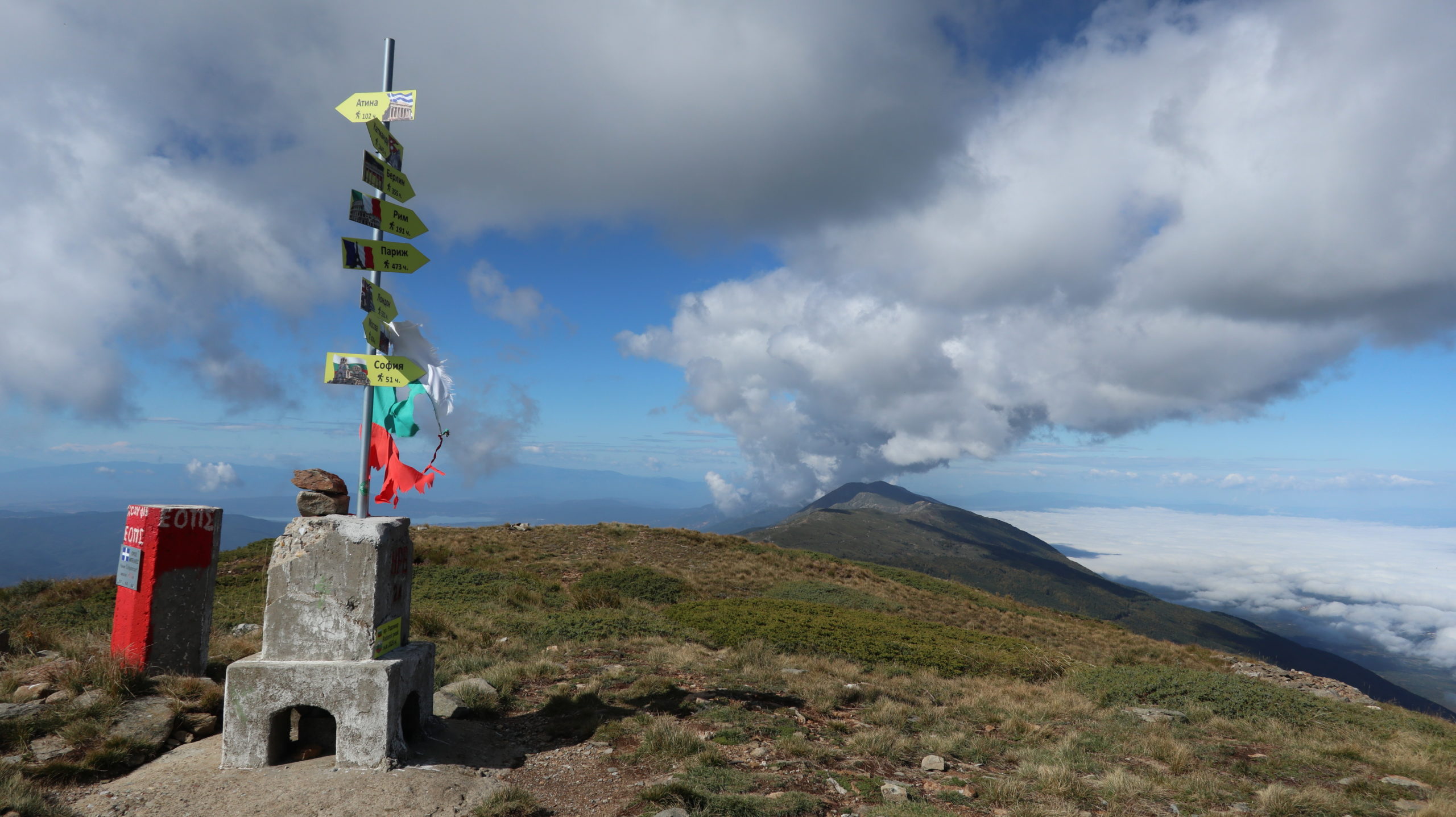 Von der Alp Κουρί Γκιολ folgt man dem Wegweiser zur Berghütte Καταφύγιο 1777 Ε.Ο.Π.Σ ΜΠΕΛΕΣ. Über eine breite Piste geht es bis zu einem verfallen Gebäude, wo man den Forstweg links nimmt, um die lange Runde, die die Piste macht, abzukürzen. Die Abkürzung ist steil und steinig und es empfiehlt sich, den GPS-track im Auge zu behalten, um nicht aus Versehen einen falschen Stichweg zu nehmen, denn die Markierung ist dürftig. Man erreicht schliesslich eine baumfreie Zone (πολυβλειο) mit einigen halbverfallenen Gebäuden, die in der Vergangenheit einem militärischen Zweck gedient haben. Auf der Piste geht es den Wegweisern zum Καταφύγιο 1777 nach. In der letzten Kurve bevor man die Hütte erreicht, nimmt man den unmarkierten Weg hoch zum демиркапия- (Demirkapia) Sattel, dem Übergang nach Bulgarien. Der Weg führt danach auf nördlichen Gratseite weiter, zunächst durch dichten Buchenwald, bald öffnet sich der Blick auf den Gipfel und das bulgarische Strumeschniza-Tal. Der breite Weg würde sich nun ziemlich umständlich in vielen Kurven um den Gipfel herum und dann von der Rückseite hinaufschlängeln. Um abzukürzen, kann man von der Einsattelung vor dem Gipfel den roten Fähnchen direkt den Westgrat hinauffolgen. Eine zugewachsene Wegspur führt durch Wacholdersträucher zum Gipfel hinauf. Zurück auf der gleichen Route.